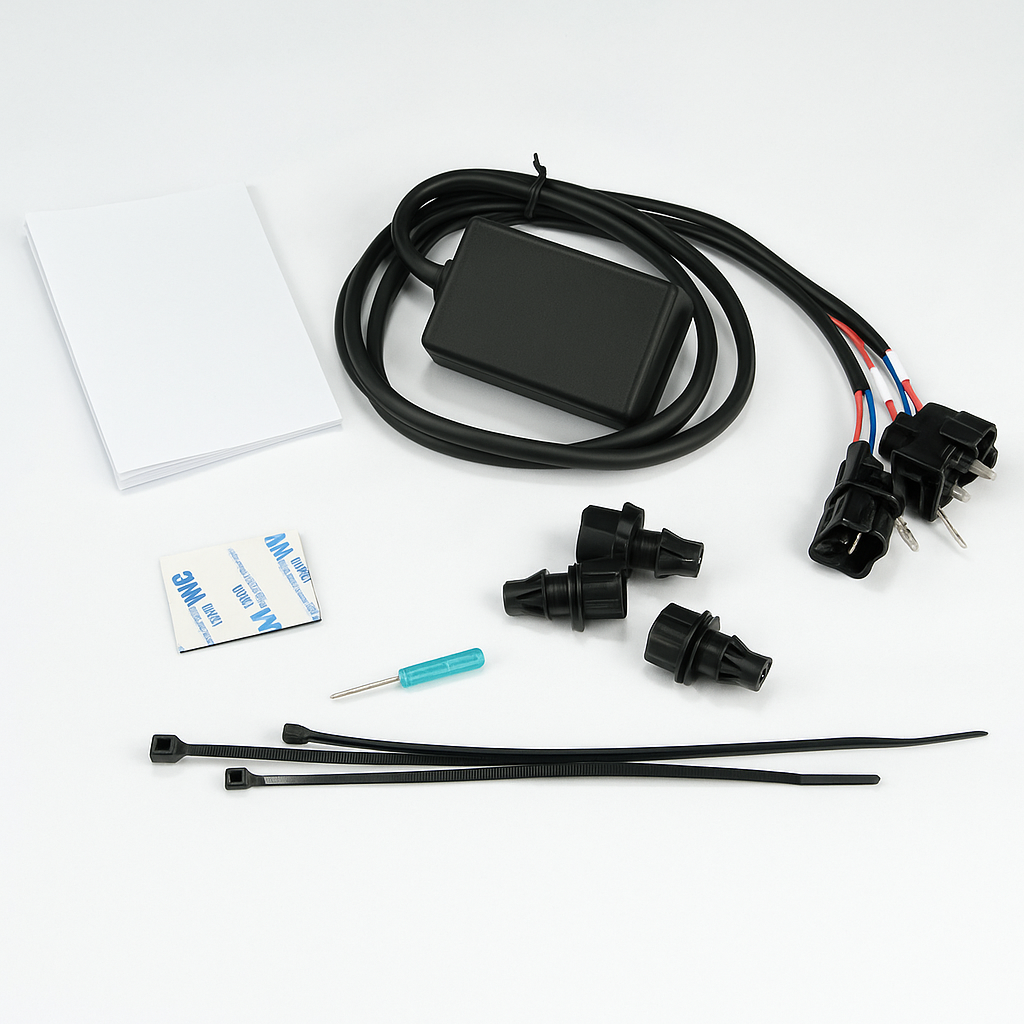 C’est le kit idéal pour les motards en déplacements dans des zones ou le carburant E85 ne se trouve pas forcément, il suffit d’un appui sur le switch et la moto reviens sur sa gestion d’origine.